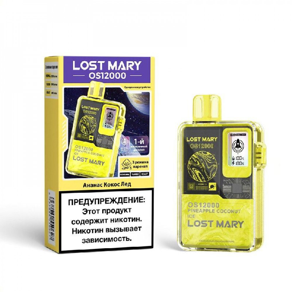 Технические характеристики Электронная сигарета LOST MARY OS 12000 Pineapple Coconut Ice (Ананас Кокос Лед)